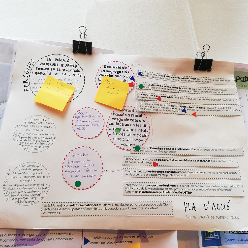 El análisis cuantitativo se complementa con un análisis cualitativo a partir de una primera sesión de seguimiento con la Alianza Ciudadana para evaluar el avance de la Agenda Urbana de Manresa y una segunda sesión de seguimiento para recopilar y analizar buenas prácticas del territorio más allá de la acción de la administración.