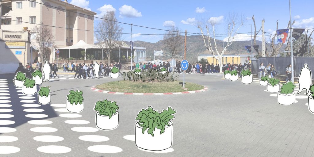 A medio plazo, las propuestas para la Av. Francesc Macià y los entornos de las escuelas plantean la posibilidad de implementar actuaciones de urbanismo táctico, lo que, además de impulsar medidas para mejorar la movilidad hacia un modelo más activo, permite testear las propuestas y evaluarlas. El urbanismo táctico facilita además cambiar y reajustar las propuestas, sacando fácilmente los elementos instalados o cambiando la disposición.