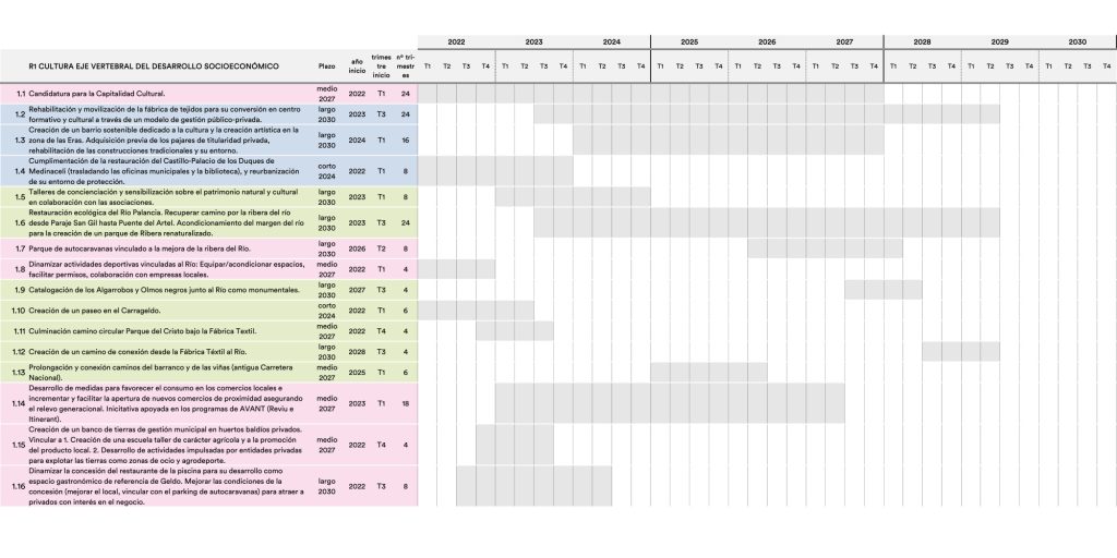 Finalmente, la estrategia incorpora un sistema de seguimiento que permite evaluar el grado de implementación y el impacto de las actuaciones a lo largo del tiempo. Este sistema se apoya en indicadores cuantitativos y cualitativos, así como en espacios de gobernanza como sesiones político-técnicas y un foro social, que garantizan la participación continua y la adaptación del plan. Asimismo, el cronograma y presupuesto organizan las actuaciones en horizontes temporales hasta 2030, facilitando su planificación y viabilidad económica.