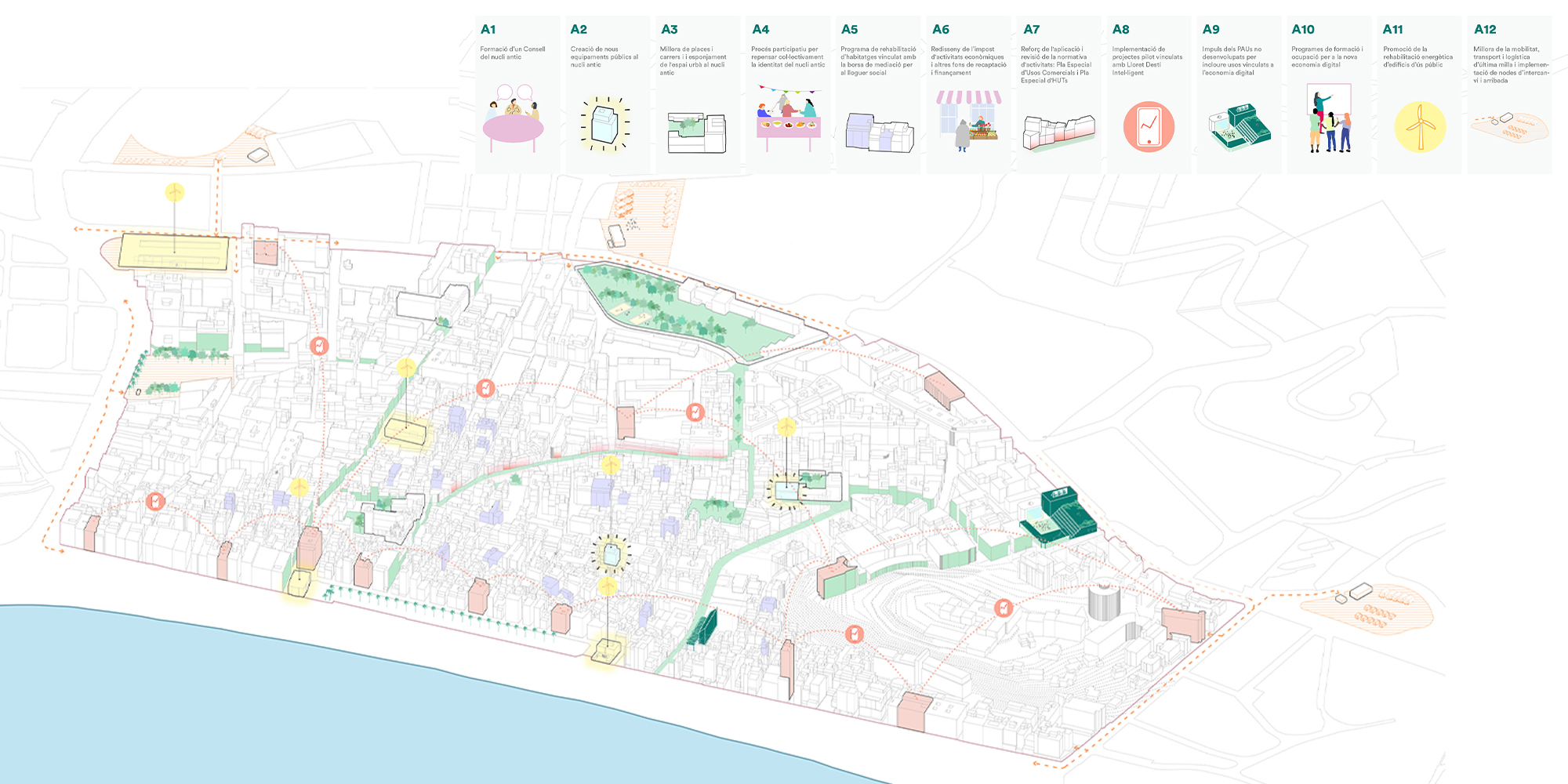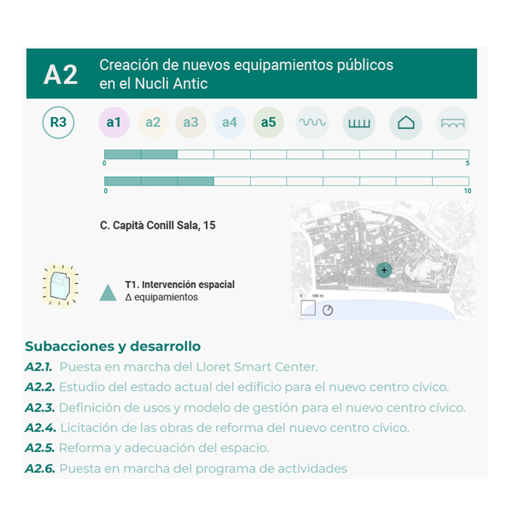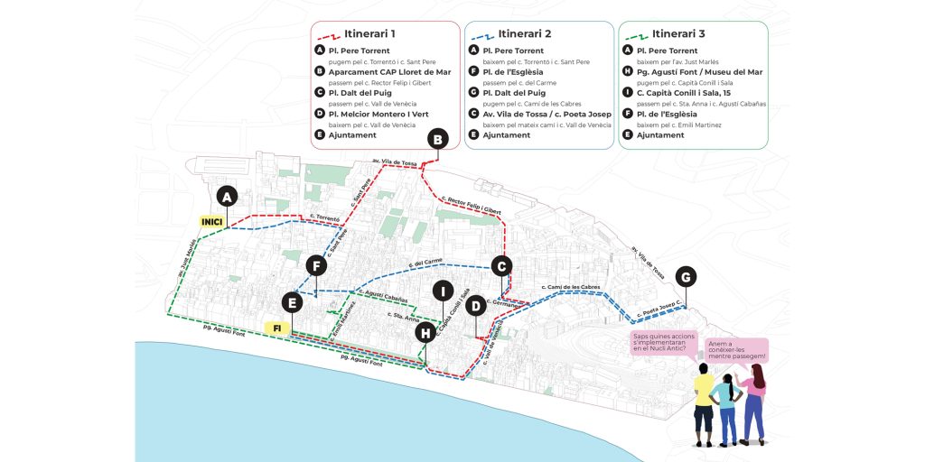 El plan director de dinamización del Nucli Antic de Lloret de Mar desarrolla un diagnóstico y un Plan Integral de Actuaciones de Mejora para este barrio en el que conviven más de 83 nacionalidades y vive una cuarta parte de la población del municipio. Las propuestas del plan se basan en un trabajo técnico de diagnóstico y un proceso participativo a tres niveles. Primero, a través un grupo motor conformado por actores políticos, los gremios vinculados a la actividad económica (hosteleros, restaurantes, comerciantes, agencias) y la asociación de vecinos y vecinas. Segundo, mediante una mesa interdepartamental con representación de las áreas técnicas del ayuntamiento. Finalmente, con cuatro mesas sectoriales abiertas de participación centradas en el vecindario, el comercio, el patrimonio y el turismo, donde han participado más de 100 personas.
