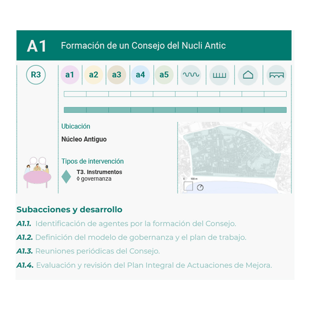 El plan tiene como principal objetivo mejorar la calidad de vida de los residentes, revitalizar el espacio urbano y generar nuevas oportunidades. Incluye 12 actuaciones, una planificación presupuestaria de 9,7 millones de euros hasta 2035, con una previsión de financiación municipal del 33%, de la que el año 2025 se ejecutaron 365.000 euros. Los resultados esperados del plan son, en primer lugar, diversificar las actividades económicas del Nucli Antic, promoviendo el comercio local y de proximidad como motor de desarrollo sostenible. En segundo lugar, prioriza la rehabilitación de las viviendas vacías, contribuyendo a revitalizar el barrio y ofreciendo nuevas oportunidades residenciales. También es esencial integrar a la diversidad de población que ya reside en el barrio, fomentando la cohesión social. El cuarto reto se centra en conseguir un equilibrio entre las actividades de ocio y la vida cotidiana, minimizando los posibles conflictos. Finalmente, se persigue mejorar el paisaje urbano y el espacio público, elementos clave para convertir el núcleo antiguo en un entorno más atractivo, accesible y agradable para todos.