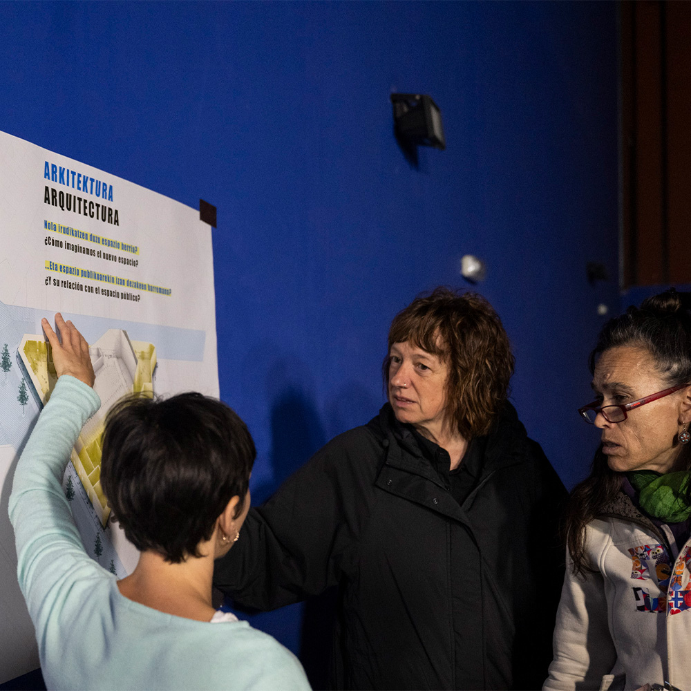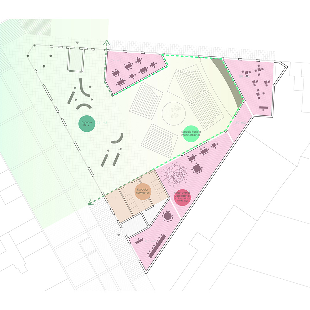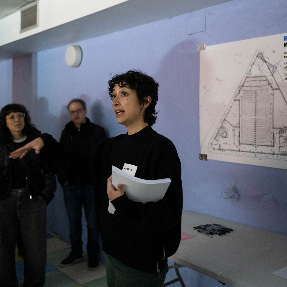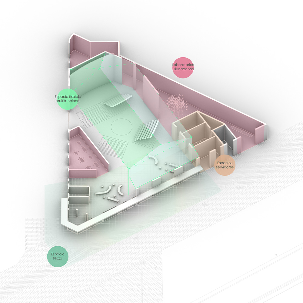 Este proceso de diseño colaborativo buscaba sentar las bases tanto arquitectónicas como programáticas y de gestión para el futuro equipamiento y, al mismo tiempo, poner en marcha de forma simbólica el potencial de reactivación del espacio. Para conseguirlo se instaló un dispositivo sobre la fachada del edificio, se realizaron sesiones de trabajo con colectivos del barrio, se recogieron propuestas desde la infancia y se organizó una jornada de puertas abiertas al espacio en la que se desarrollaron distintos talleres de cocreación a la que asistieron más de 100 personas.