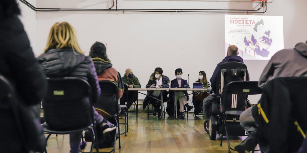 En este contexto, el Ayuntamiento de Donostia impulsa la renovación del parque de Bidebieta, principal espacio público de centralidad del barrio, a partir de una solicitud vecinal aprobada en los presupuestos participativos de 2021. El parque, situado en el Distrito Este, en un barrio construido entre 1964 y 1967 caracterizado por bloques abiertos y espacios libres poco jerarquizados, presenta una geometría triangular definida por dos caminos principales que organizan las diferentes áreas en terrazas sobre la ladera. A pesar de su valor paisajístico, derivado de la vegetación existente y del diseño de sus espacios, el parque mostraba carencias en accesibilidad, seguridad y adecuación de usos tras más de veinte años desde su última reforma.