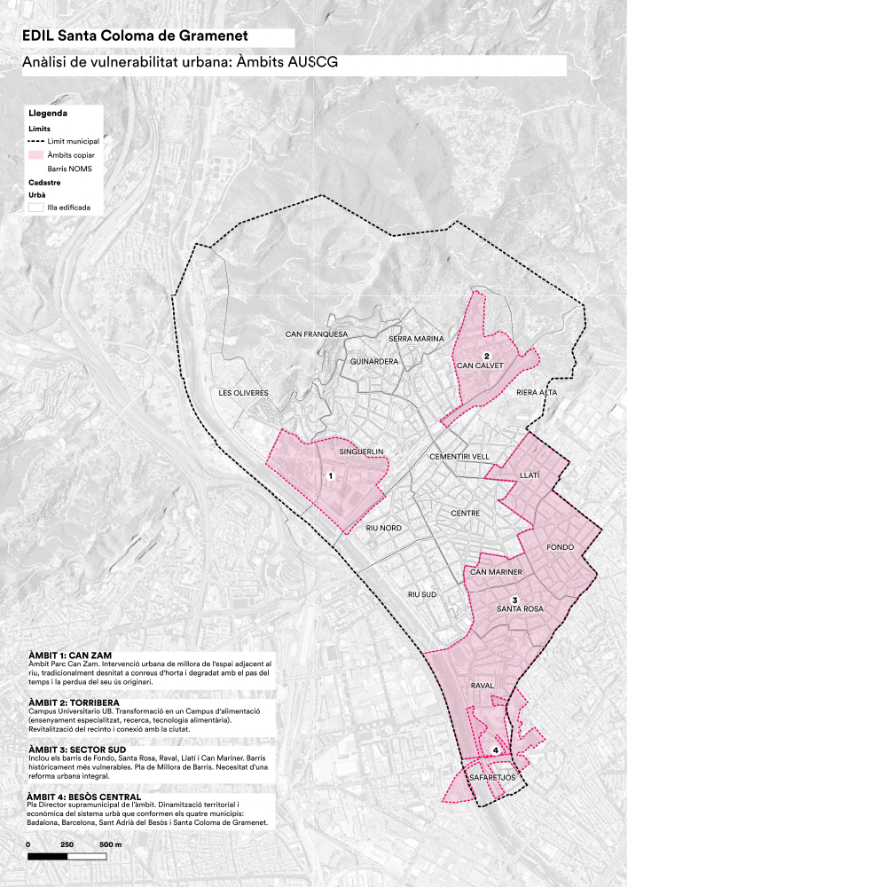 Santa Coloma de Gramenet es un municipio compacto y denso dentro del Área Metropolitana de Barcelona (AMB). Situado entre el río Besòs y la serralada Marina, tiene unos de los índices de vulnerabilidad socioeconómica más elevados del AMB. Es un municipio de referencia tanto en materia de regeneración urbana como en la gestión de fondos comunitarios orientados a este fin. Cuenta con una amplia trayectoria en políticas de regeneración urbana y en la captación de fondos europeos, desde el programa URBAN hasta la EDUSI o la primera Llei de Barris de Catalunya. Con el apoyo de Paisaje Transversal, Santa Coloma ha continuado esta trayectoria convirtiéndose en adjudicatario de las convocatorias PAI-EDIL (2024) y la primera convocatoria de la nueva Llei de Barris (2025).