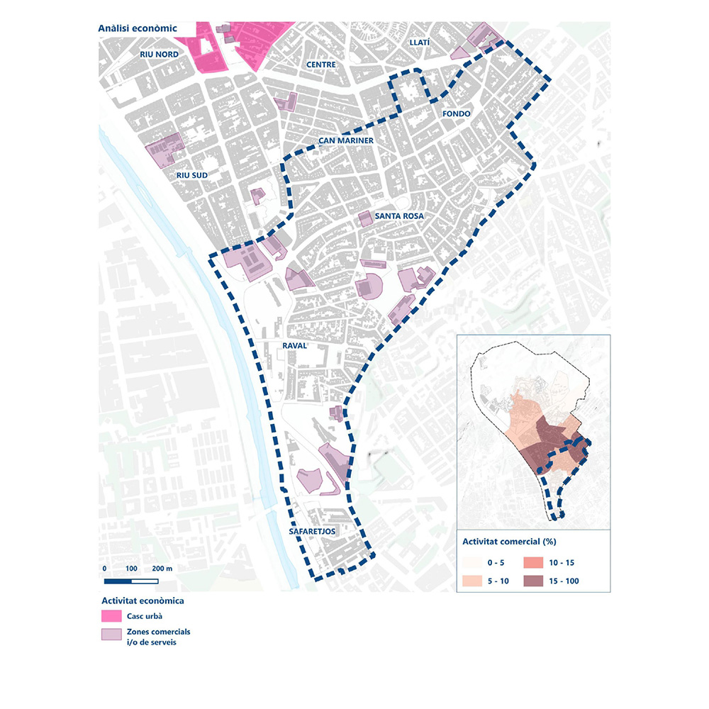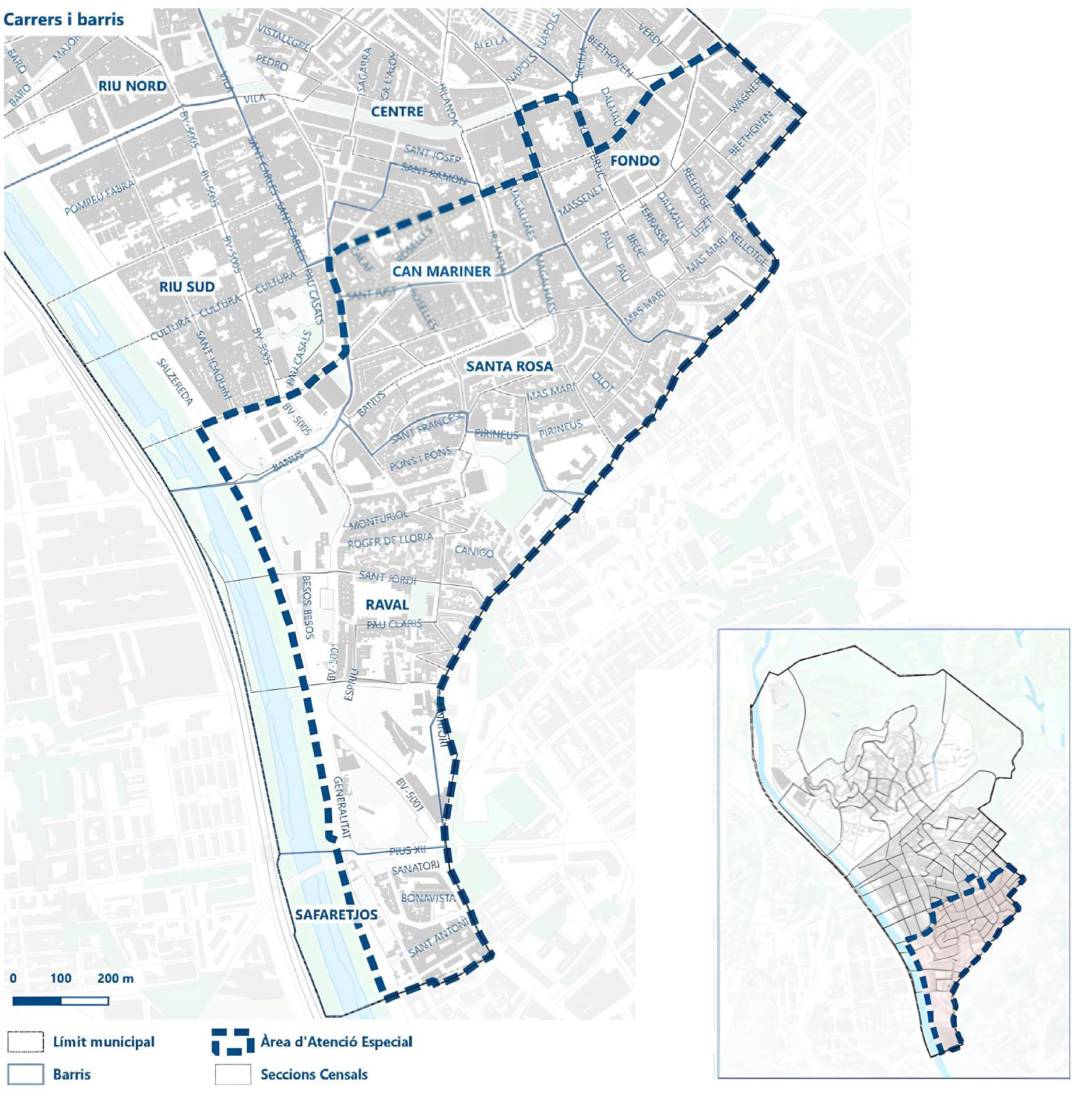 Estos barrios, caracterizados por su elevada densidad urbana, la precariedad habitacional y el déficit de infraestructuras, están situados entre Badalona, Sant Adrià y el río Besòs. Presentan un tejido urbano compacto y envejecido, en el que se concentran y agravan diversas problemáticas urbanas y sociales. Su población se caracteriza por niveles bajos de renta, un menor grado de formación y una elevada concentración de población de origen extranjero.