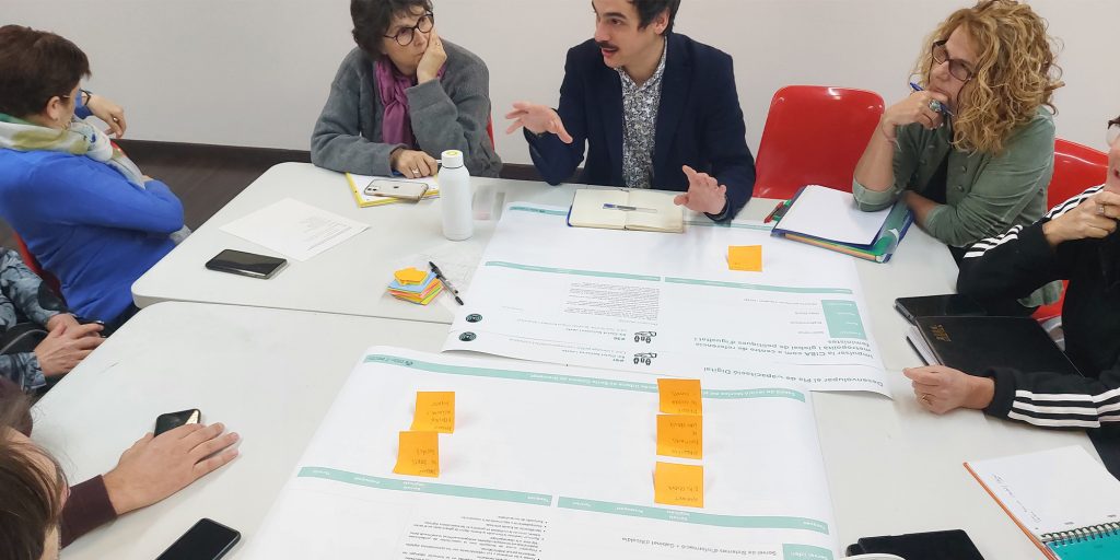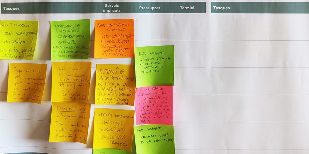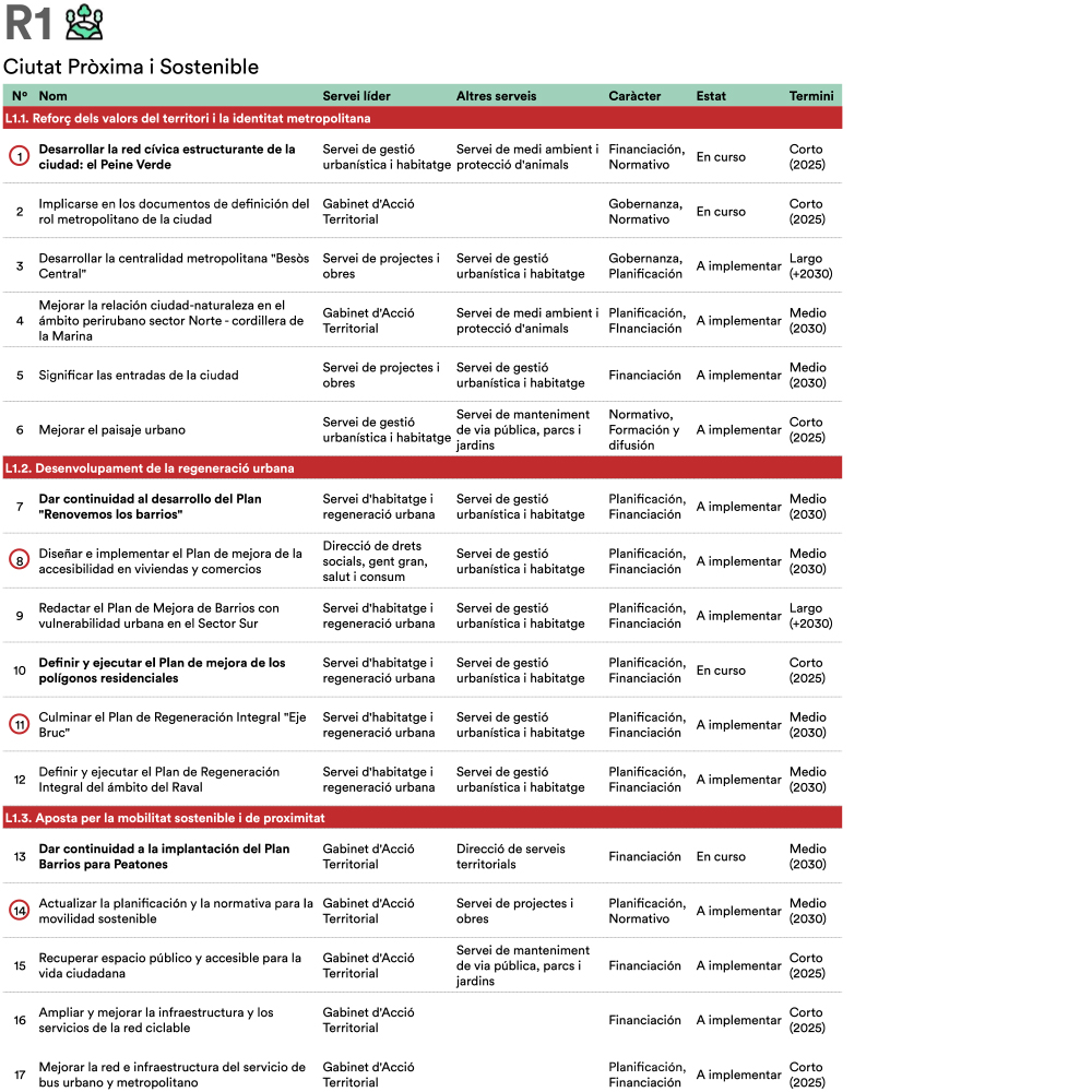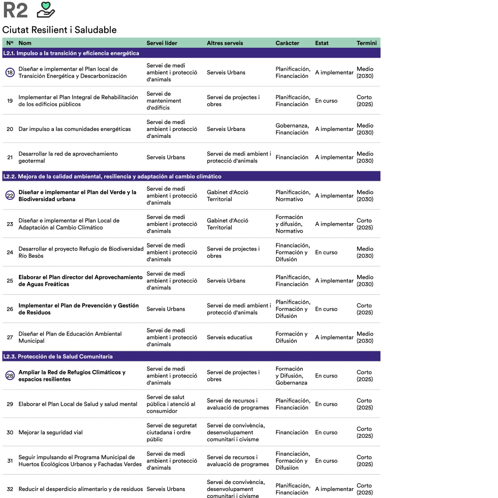 A partir de tres sesiones transversales de trabajo con técnicas y técnicos municipales de diferentes servicios y direcciones del Ayuntamiento se realiza una revisión general del plan de acción, una priorización de las acciones tractoras y un desarrollo en profundidad de estas últimas. Manteniendo la estructura original de cuatro retos estratégicos, se reestructura el plan de acción y se identifican 55 actuaciones, de las cuales 14 son acciones tractoras y se desarrollan en fichas específicas.